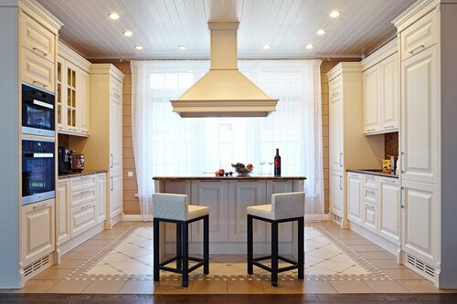Островные вытяжки являются не только функциональным элементом кухни, но и важным декоративным акцентом. Они идеально подходят для классического стиля кухни, добавляя шарм и элегантность.