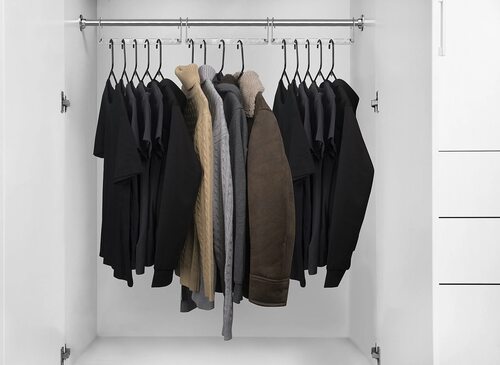 Мы рекомендуем также использовать различные органайзеры и разделители для вешалок, чтобы удобно хранить мелкие аксессуары, такие как ремни, шарфы и галстуки.