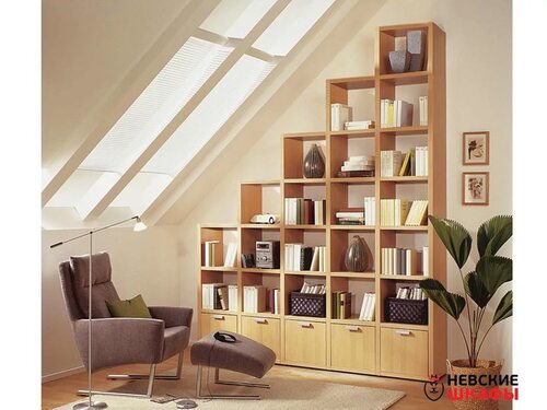 Идеи для книжного шкафа в мансарду
