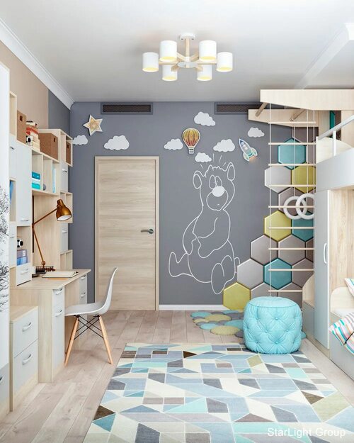 Разделение комнаты на функциональные зоны поможет вашему мальчику организовать свои занятия, улучшит его концентрацию и воображение, а также сделает пребывание в комнате более комфортным.