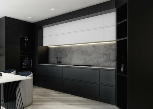Черно-белая матовая кухня не только выглядит элегантно, но и обладает практичностью. Матовые поверхности менее подвержены отпечаткам пальцев и царапинам, что делает их легкими в уходе. Кроме того, такой дизайн идеально сочетается с различными стилями интерьера, от минимализма до скандинавского дизайна.