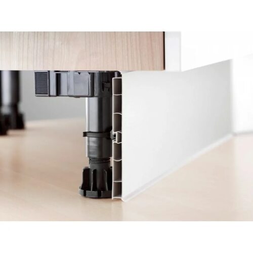 Важно убедиться, что цоколь ровно прилегает к полу, чтобы обеспечить единый и аккуратный вид кухонной мебели.