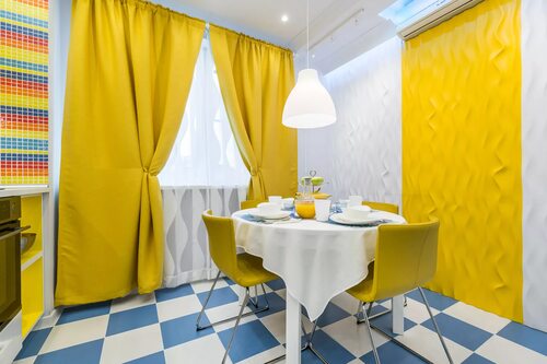 Желтые шторы прекрасно подходят для создания солнечного и радостного настроения в кухне. Они могут быть различных оттенков, от нежного лимонного до насыщенного ярко-желтого. Подбирайте оттенок в зависимости от общего стиля интерьера и вашего личного вкуса. Солнечные желтые шторы могут стать ярким акцентом в нейтральном интерьере или дополнить уже имеющуюся цветовую палитру.