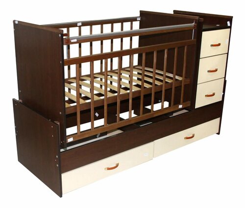 Кроватка детская Polini Kids simple 1100 с комодом, вяз-белый