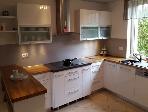 Дизайн кухни буквой г позволяет оптимально использовать пространство, обеспечивая удобный доступ ко всем рабочим зонам. Этот вариант идеально подходит для небольших кухонь, где каждый сантиметр пространства имеет значение.
