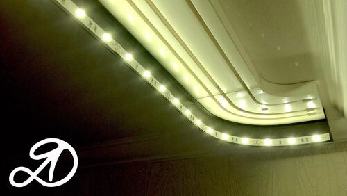 Установка диодной ленты на карнизе