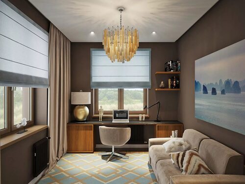 При оформлении кабинета с двумя окнами важно учитывать особенности освещения и выбирать мебель, которая гармонично впишется в пространство. Расположение стола, кресла, полок и других элементов мебели должно способствовать удобству и эффективности работы.