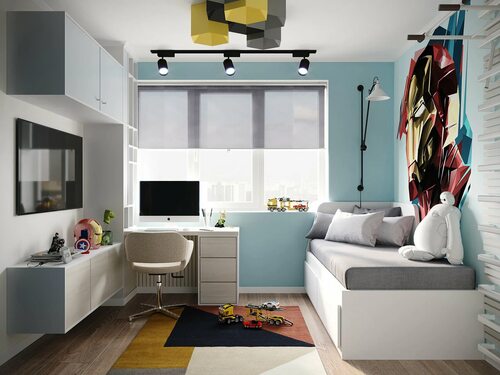 При создании дизайна комнаты для мальчика 11 лет в современном стиле, цветовая палитра играет важную роль. Оптимальным выбором могут быть сдержанные и модные оттенки, такие как синий, серый, зеленый или черный, которые можно использовать в сочетании с яркими акцентами.