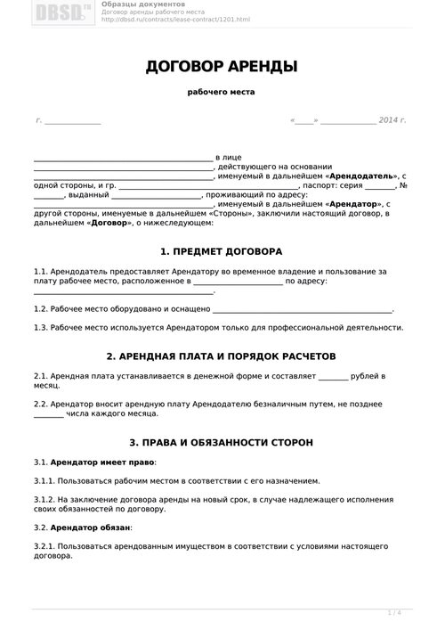 Образец заполнения договора на съем жилья