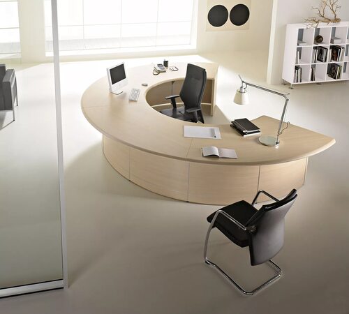 Стол полукругом в офис обладает рядом преимуществ, таких как экономия места, удобство при работе с документами, а также создание эстетически привлекательной рабочей зоны.