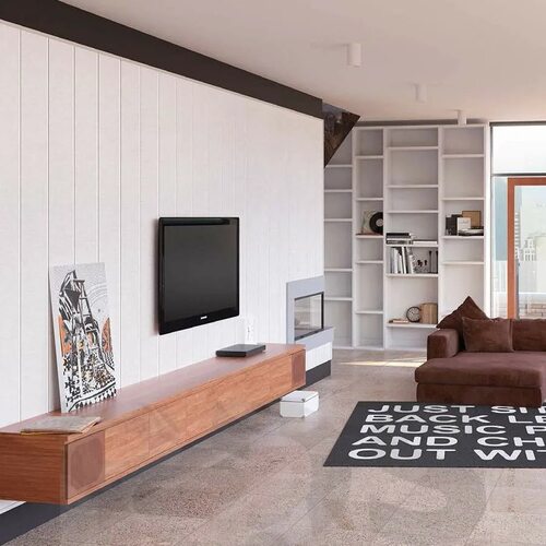 Ниже представлены фотографии мдф Kronostar Wall Street W048 Лен, демонстрирующие его разнообразные варианты отделки и стилистические решения.