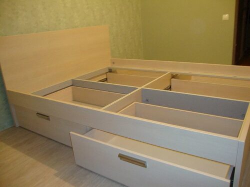 После того как основа кровати готова, приступайте к сборке и установке выдвижных ящиков. Следуйте инструкциям и используйте фотографии для лучшего понимания процесса.