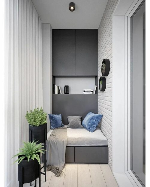 3. Угловой диван-шкаф, идеально подходящий для небольших балконов.