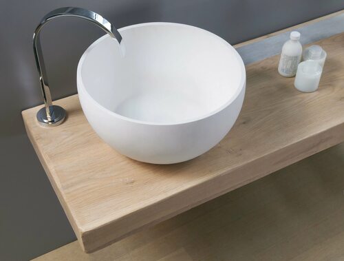 Столешница из искусственного камня с накладной раковиной