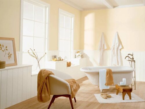 Цвет сливочного масла можно использовать как основной или акцентный оттенок в интерьере. Он отлично сочетается с нейтральными цветами, такими как белый, серый и бежевый, а также с деревом, камнем и металлом. Этот теплый оттенок придает помещению уют и создает атмосферу спокойствия.