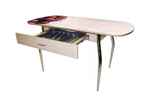 Стол кухонный с раздвижным ящиком для приборов - удобное и практичное решение для кухни. Этот функциональный предмет мебели позволяет максимально эффективно использовать пространство и хранить кухонные принадлежности в удобном доступе.