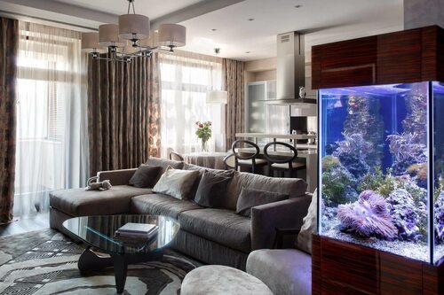 Дизайн гостиной с аквариумом может придать вашему интерьеру уникальный и расслабляющий вид. Аквариум станет не только элементом декора, но и центральным объектом в вашем жилом пространстве. В этой статье мы рассмотрим различные способы интеграции аквариума в дизайн гостиной, а также предоставим множество вдохновляющих фотографий.