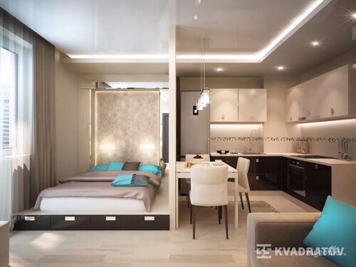 Зонирование спальни и гостиной в одной комнате 17 кв.м