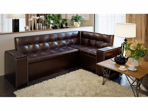 Кухонный угловой диван из кожзама предлагает удобство и функциональность. Благодаря своей форме он помогает оптимально использовать пространство кухни, а также создает уютную обстановку для отдыха и приема пищи.