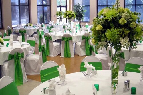 Не забывайте о освещении – зеленое оформление свадебного зала может быть дополнено красивым освещением, которое подчеркнет красоту зеленой декорации и создаст уютную атмосферу.