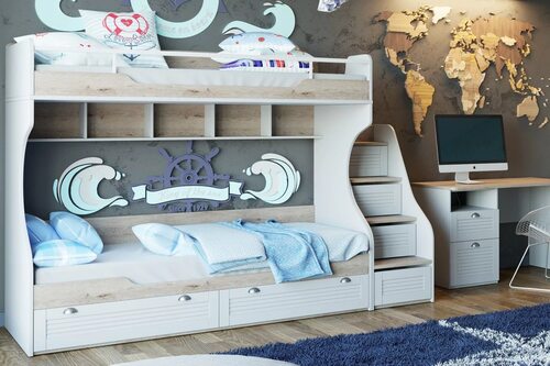 Кровать двухъярусная Трия Ривьера представляет собой элегантное и практичное решение для детской или гостевой комнаты. Ее стильный дизайн и функциональность делают ее популярным выбором для современных интерьеров.