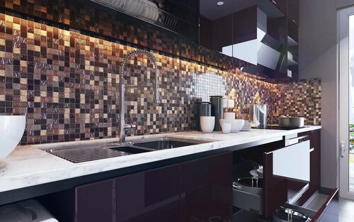 Коричневая мозаика может прекрасно вписаться в различные стили интерьера, от классического до современного. Вы можете использовать мозаичные плитки для создания узоров, комбинировать их с другими материалами или создавать цельные поверхности. Важно учесть освещение и цветовую гамму кухни при выборе дизайна фартука.