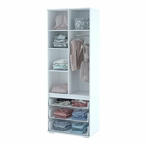 Шкаф Тойс ШК 07 имеет несколько отделений, что позволяет разместить в нем одежду, игрушки и другие предметы. Удобные полки и ящики делают использование шкафа максимально удобным и практичным.