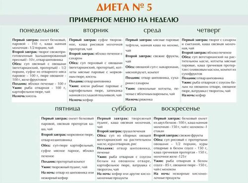 Диета номер 5. таблица разрешенных и запрещенных продуктов