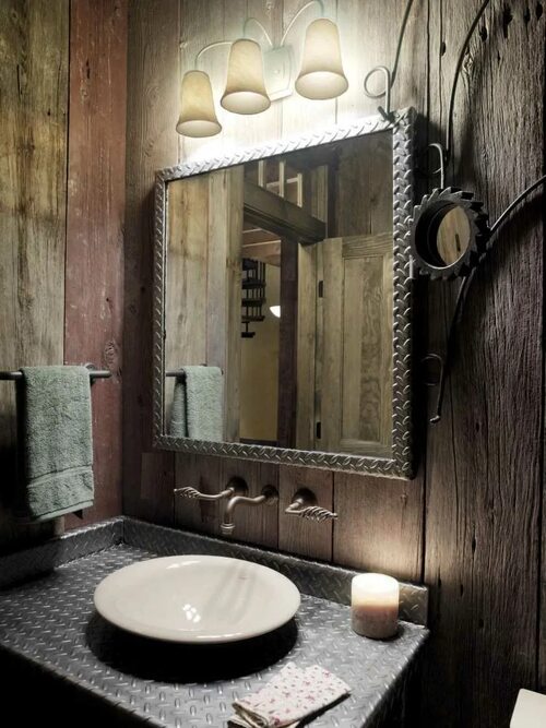 Примеры зеркал в стиле лофт для ванной комнаты