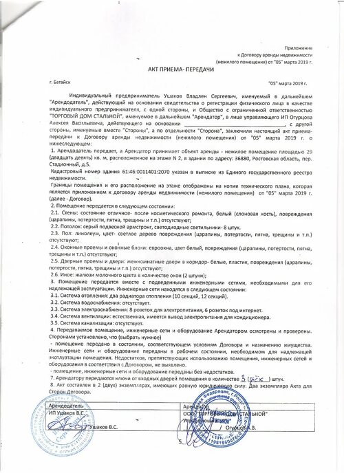 Акт приема передачи имущества при сдаче квартиры в аренду
