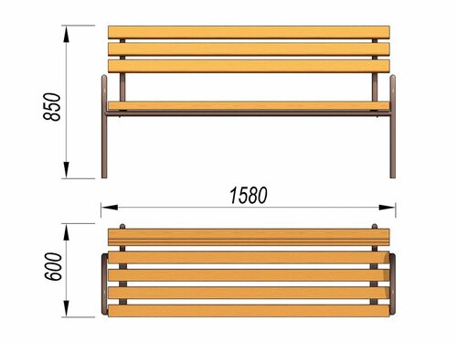 Чертеж парковой скамейки со спинкой