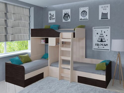 Кровать трио для троих - это удивительное решение для семей с тремя детьми или для гостевых комнат. Эта инновационная мебельная конструкция обеспечивает комфорт и функциональность, не занимая лишнего места.