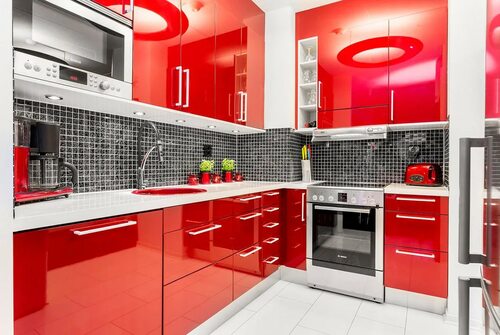 Использование красной мебели в дизайне кухни добавляет яркий и запоминающийся акцент. Красный цвет ассоциируется с энергией, страстью и силой, поэтому кухня с красной мебелью будет выглядеть динамично и эмоционально.