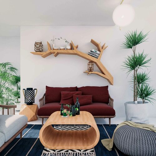 Полки в виде дерева в интерьере
