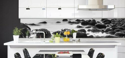 Черно-белые стеклянные фартуки отличаются прочностью, легкостью в уходе и возможностью легкой установки. Благодаря своей цветовой гамме они подходят практически к любому стилю кухни, от классического до современного.