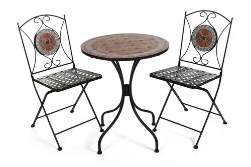 Кованый стол Ромео с мозаикой отличается не только высоким качеством изготовления, но и изысканным дизайном. Его столешница украшена мозаичным узором, который придает изделию особую изящность и шарм. Каждая деталь стола тщательно проработана мастерами, чтобы создать неповторимый образ.