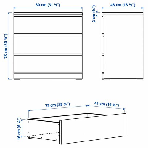Благодаря различным вариантам размеров ящиков, комод Мальм может быть использован как для хранения мелочей, так и для белья, одежды и других предметов. Большие ящики позволяют удобно разместить объемные вещи, а небольшие — аккуратно упорядочить мелкие предметы.