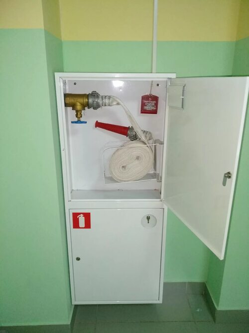 Ниже представлены фотографии готовых пожарных шкафов ОКПД 2, установленных в различных помещениях.