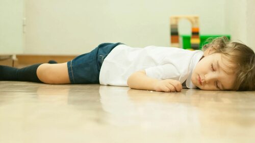 Мальчик лежит на полу