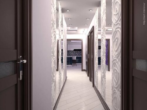 2. Зеркальные панели. Размещение зеркальных панелей вдоль узкого коридора придаст ему стильный и современный вид.