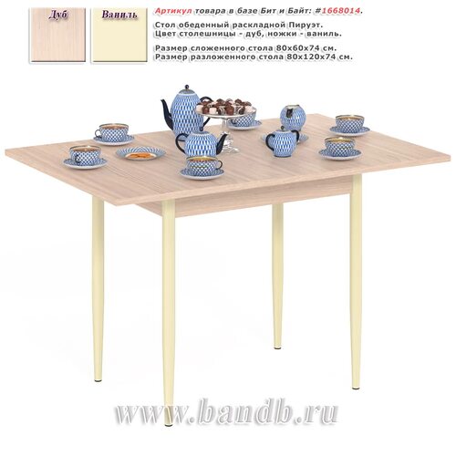 Стол обеденный раскладной Пируэт 80х60х74 см - отличное решение для небольших кухонь или столовых. Этот стол компактный и удобный, благодаря возможности раскладывания.