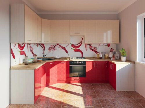 Кухонный гарнитур красный с бежевым