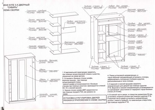 После установки дверей проверьте работу механизмов, убедитесь, что шкаф стоит ровно и устойчиво. При необходимости отрегулируйте положение и проверьте все соединения.