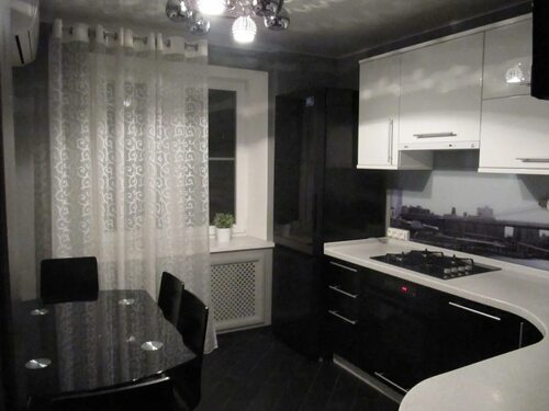 Кухонный гарнитур в небольшую кухню чёрно-белого цвета