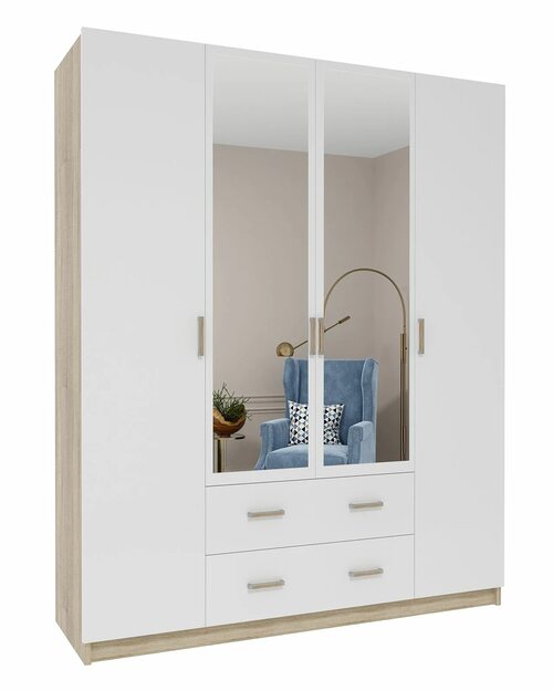 Шкаф 2-х дверный с зеркалом - это практичное и функциональное решение для хранения одежды, обуви и аксессуаров. Этот вид мебели позволяет не только организовать пространство, но и визуально расширить помещение благодаря зеркальным вставкам.