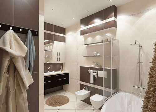 Идеи дизайна ванной комнаты в коричнево бежевых тонах