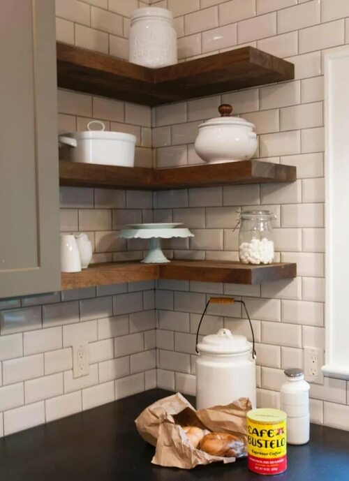 В нашей галерее вы найдете множество фотографий с различными вариантами угловых подвесных полок, которые помогут вам выбрать подходящий вариант для вашей кухни.