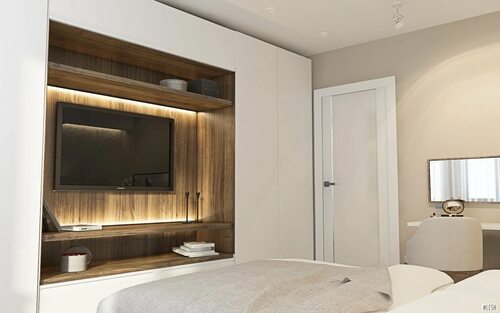 Современный дизайн спальни с встроенным телевизором часто включает в себя гладкие линии, минималистичные цветовые схемы и инновационные технологии, которые помогают создать уютное и стильное пространство для отдыха.