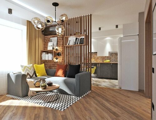 Студия с зонированием интерьера - это современное решение для маленьких квартир, которое позволяет создать функциональные и уютные пространства. Зонирование помогает разделить студию на различные зоны, такие как гостиная, спальня, кухня и рабочее место, не используя стены.