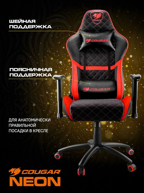 Кресло игровое Cougar Neon Красный - это стильное и комфортное кресло, специально разработанное для геймеров. Оно обладает удобным дизайном, эргономичной формой и регулируемыми элементами, которые позволяют настроить кресло под себя.